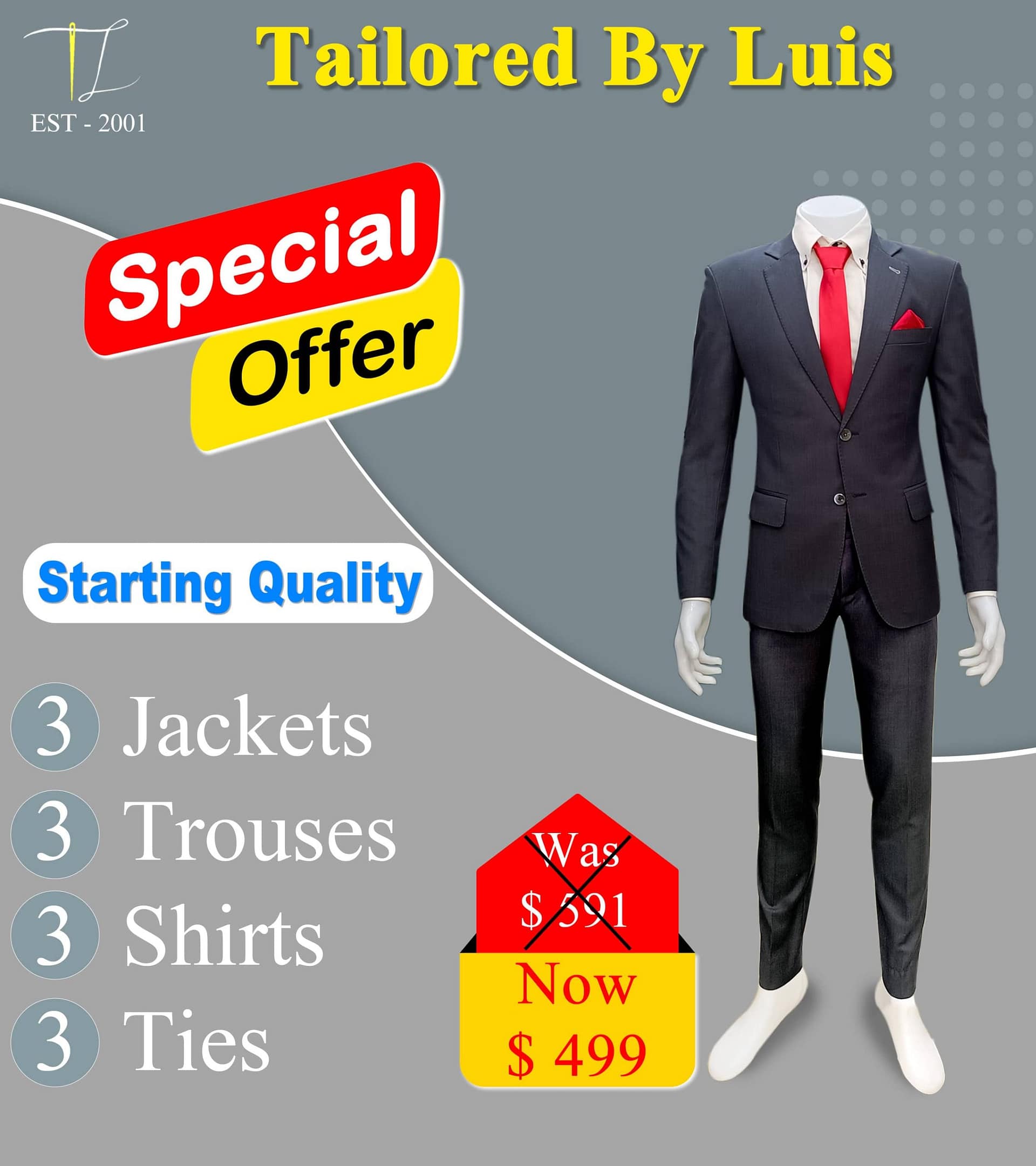 Starting Quality3 Jackets3 Trousers3 Shirts3 Ties———————————— 591 USD499 USD